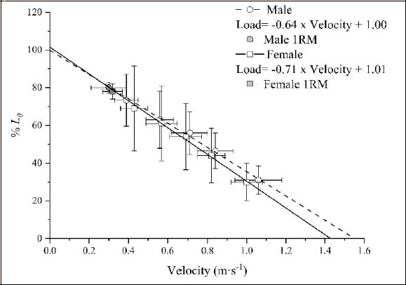 )-mean velocity relationship and the position of one repetition maximum (1RM) on the load-velocity relationship profile.