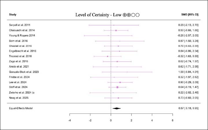Main effects for PAT (p < 0.01). SMD: Standardized Mean Differences; CI: Confidence Interval, GRADE: Certainty of evidence.
