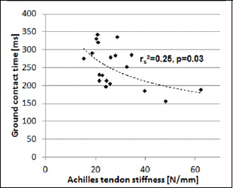 Relationship between ATS and GCT during drop jumps from 40 cm (n=19). R