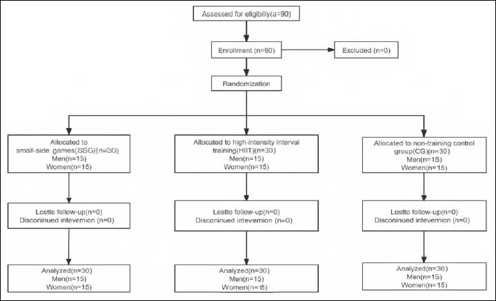 Flowchart. SSG: small-side games; HIIT: High-intensity interval training; CG: control group.