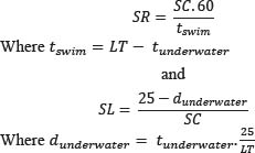 Note that t_swim and t_underwater are assessed using the human activity recognition model from Delhaye et al., (2022) and represent the duration of the front-crawl phase and underwater phase, respectively, while d_underwater refers to the distance traveled during the underwater phase.