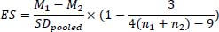 Data synthesis and effect measuresIn this study, between-group comparisons were made to calculate effect sizes (ES). Given the typically small sample size in sport science, Hedge’s g ES was utilized for its bias correction using means and SDs from experimental and control group (Hedges and Olkin, 2014). Specific formulas used are as follows:
