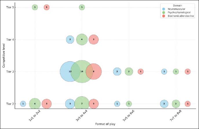 Evidence gap map showing SSG formats, competitive levels, and outcome domains.